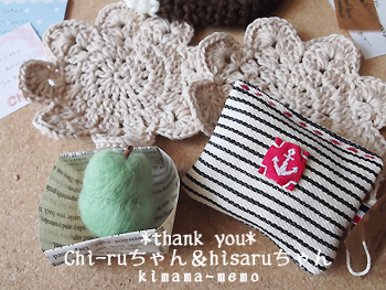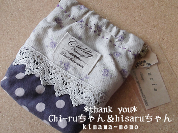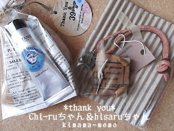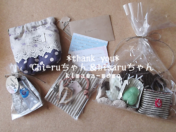 もう2ヶ月ぐらい前になっちゃうんですが、Chi-ruちゃん と hisaruちゃん からプレゼントをいただいてました♪
