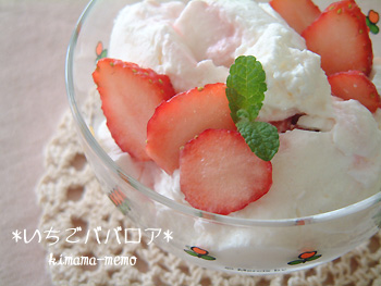 ババロア、イチゴたっぷりで贅沢だね(^O^)美味しそう。