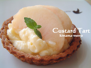 いつものレンジで作るカスタードクリームと、母からもらった白桃をのせました(^-^)