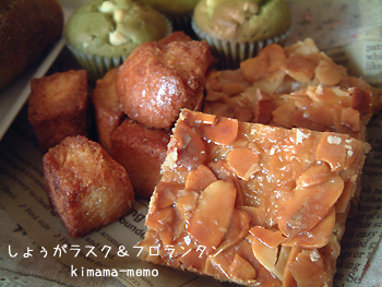 この前のお礼便&プチプレ便に入れた「しょうがラスク」と、先日しんばしサンタ便に入っていたパイ生地のフロランタンも作っていきました。