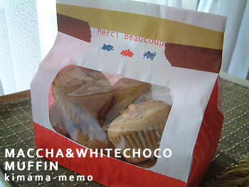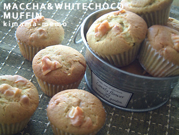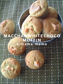 今日はお友達の家に行く予定があったので、朝から まりもさん の「抹茶とホワイトチョコのマフィン」焼きました♪