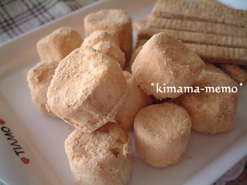 yoshieさんにもaukoさんにも小さなお子さんがいらっしゃるので、おやつの足しになれば・・・と思って、栄養豊富なお麩のおやつを作りました。