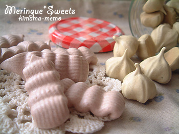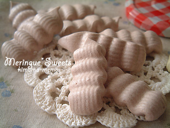 先日、aukoさんにいただいたメレンゲのお菓子が、とても素敵な絞り出しの形だったので真似してみたかったんですが、私には無理なので…こんな風に絞ってみました(●´ω`●)ゞ