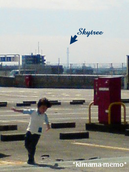 天気が良かったので、珍しく屋上に車を止めたパパ。
