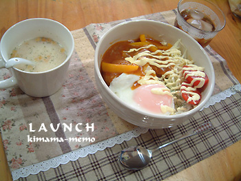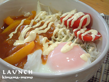 煮込みハンバーグをのせた、ロコモコ風ランチでございます~