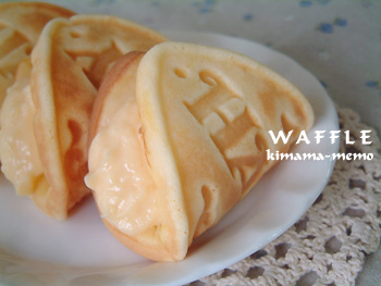自宅に着いて、先日ki*ちゃんからいただいた「つぼくさ茶」を飲みながら、ちょっとお話し(その間に私はカスタードクリーム作ってました(笑))をして、しんばしさんが作ってみたい!とリクエストしてくれた「カスタードワッフル」を作ることに。