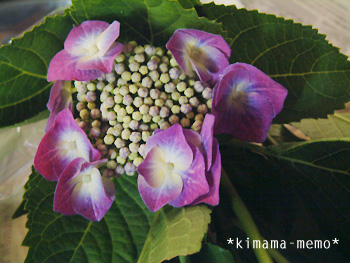 ki*ちゃんの住んでいるところでは、あまりあじさいを見かけることが少ないというので、実家で咲いたあじさいをちょっぴりお届けしました。
