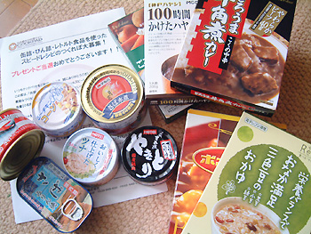 いつもお世話になってるCOOKPADで、コンテストで受賞したレシピのつくれぽ(実際に作って写真付きでコメントを投稿する)で、先着50名に届く、缶詰・レトルト食品詰め合わせが届きました!