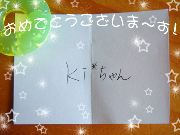 長男クンがサササッと引いて、ペラリと開いたらki*ちゃんの名前が書いてあって、思わずちょっと笑っちゃった( ̄m ̄〃)