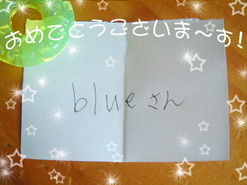 ゆーみんさんとki*ちゃんのご住所等は知っているのですが、blueさんにはご連絡先等を教えていただきたいので、左側にある管理人宛メールのフォームから、「・お名前・ご住所・お電話番号・メールアドレス」をご連絡くださいませ♪