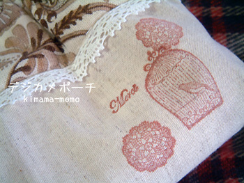 柄の入った生地は、以前母の日のプレゼントにファスナーポーチを作った時の余り布ですね。