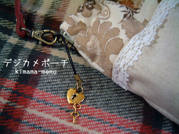 合皮の持ち手とハートキーのチャームも付けてみました(^^)