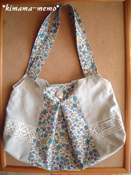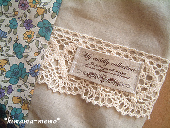 表側には、yoshieさんのプレゼント企画でいただいた幅広のレースとタグをつけました(^^)