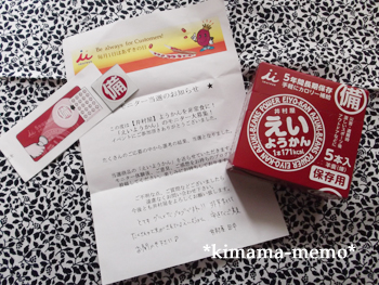 羊羹の非常食ってびっくりだけど、手ごろでかさばらないしいいね^^