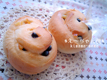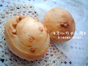 え~ちゃんの可愛らしい文字でつづられたお手紙と、美味しいお菓子とパン、そして手編みのドイリー♪