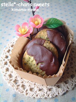 緑茶の入ったクッキーに、チョコをつけたスイーツ♪