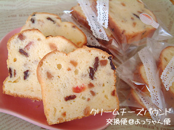 クリームチーズを混ぜ込んだ生地に、フルーツミックスがたっぷり入ったケーキです♪