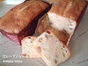 といっても、クルミ入りのパウンドケーキの焼き上がりに、上からメープルシロップと水を溶いたグレーズをたっぷりとかけただけのケーキなんですが(f^^)