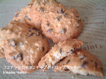 こちらは、稲田多佳子さんのレシピ本から「ココナッツとチョコチップのドロップクッキー」です。