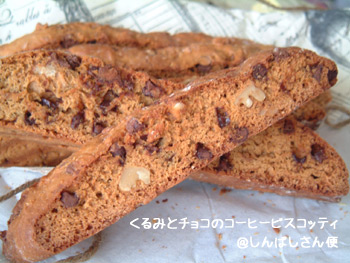 しんばしさんやstella*ちゃんが作ってくれたビスコッティに比べると、作った本人に似てとてもずんぐりむっくりで美しくないんだけど・・・食べてみたら、悪くなかったので入れてみました。