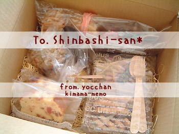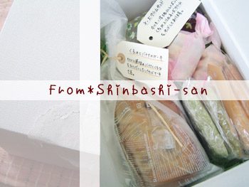 しんばしさんには、お菓子以外に、ちょっとしたおまけも入れてみました(^^)
