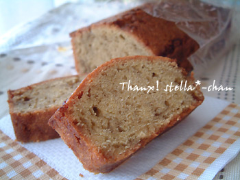 カラメル風味のバナナとクルミを使った、くるみとバナナのケーキです(^-^)