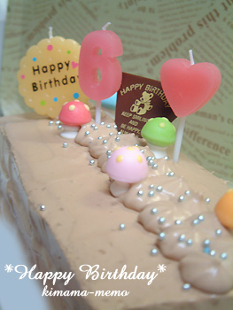 チョコプレートをのせたり、ロウソクをのせたり、三女チャンと一緒に飾りつけをしました(^^)