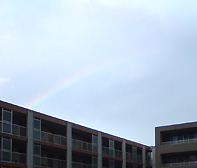 今朝、台風のような雨風が10分程度続いたあと、あっという間に晴れ間が出て、幼稚園に行く時間に虹が出てました♪