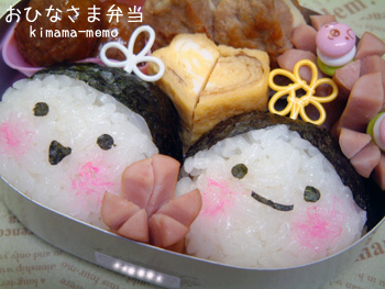 今日は「ひなまつり」ってことで、三女チャンのお弁当はおひなさま(もどき)弁当にしました♪