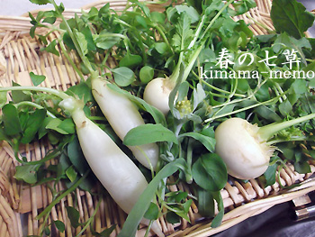 セリ、ナズナ、ゴギョウ、ハコベラ、ホトケノザ、スズナ、スズシロ。