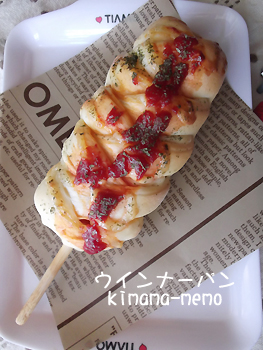 棒付きウインナーがあったので、子どもたちも大好きなウインナーパンを焼きました(*^_^*)