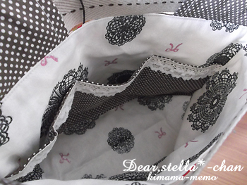 内側はレースとリボン柄の生地。