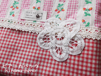 レースとリボン柄の生地は、ミミ部分のロゴ文字が可愛かったので、そのままポイントになるかな~と思って、あえてそのまま♪