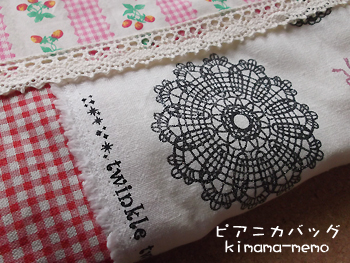 ピアニカ本体は長女チャンからの年代物なので(^_^;)、せめてバッグは作ってあげようと思って。