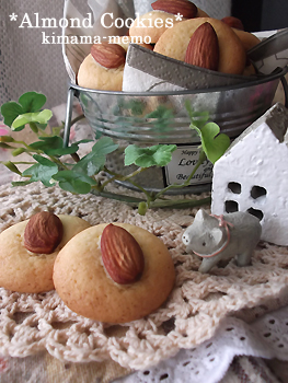 先日モニプラさんで当選した素焼きアーモンドが届いたので、念願のアーモンドクッキーを焼きました(*≧m≦*)