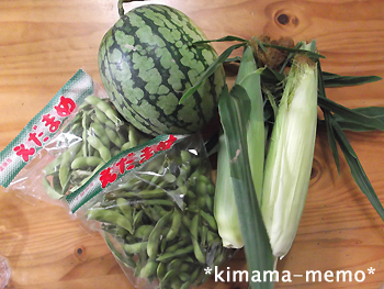 枝豆好きの長男クン、スイカ好きの三女チャン、トウモロコシ好きの次女チャン…