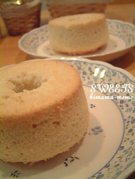 桜シフォンを10cmサイズの型で焼いたものを2つ。