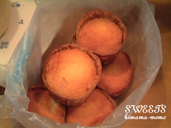 本当に紙コップで焼こうと思ってたんだけど、焼く段階で紙コップの数が全然足りないことに気がつき(爆)、急遽10cm型で焼いて、型ごと持参(笑)