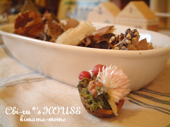 ちっちゃなクルミにお花やちっちゃな実が入ってます。