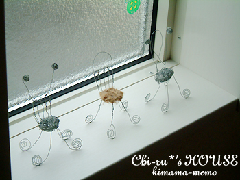 階段途中にある窓に飾ってあった、ワイヤー小物。