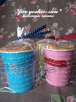 ちなみに紙コップで焼くと、一人分にちょうどいい量だし、プレゼントするのにも良いですよ~