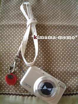 前のデジカメと違って軽いので、首から下げてるのも有りだな~♪と思って、ネックストラップも作りましたヨ。