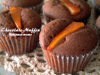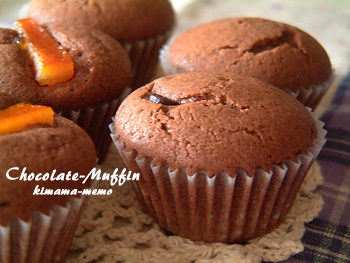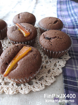 清見オレンジのピールを使ってみたくて、おやつ作るがてら「チョコマフィン」焼きました♪