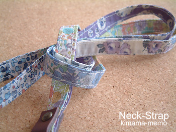 以前、yoshieさん からプレゼントしてもらったり、shopで購入したリバティのカットクロスを何種類かつなげて(カッコよく言えば、パッチ?(笑))、ストラップにしました。