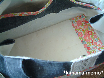 内側は、バンダナみたいな柄の、やや厚手の綿生地です。