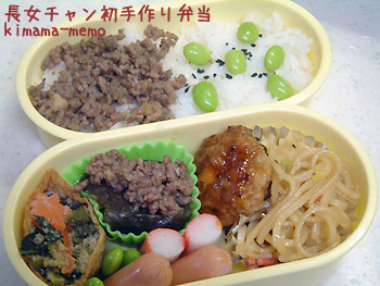 長女チャンが初めて自分でお弁当作りましたヨ。