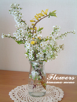 これは、長男クンが植え込みに咲いてる花を摘んで(もいで?)プレゼントしてくれた雪柳。