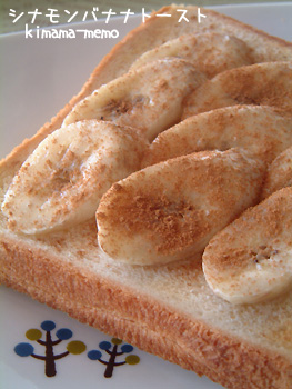 食パンにスライスしたバナナを並べて、シナモンを振ってトーストしただけなんですが・・・